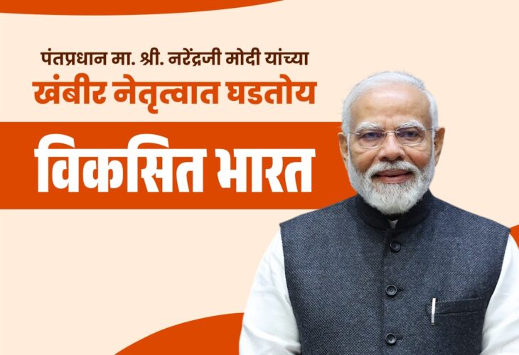 भारताचे कणखर नेतृत्व पंतप्रधान मा. श्री. नरेंद्रजी मोदी यांच्या नेतृत्वाखालील सरकारच्या दूरगामी निर्णयांमुळे आपला देश विविध क्षेत्रात नेत्रदीपक प्रगती करीत आहे. जागतिक पटलावर भारत एक शक्तिशाली आणि समृद्ध राष्ट्र म्हणून गतीने पुढे जात आहे. स्वतःला प्रधान सेवक म्हणविणारे पंतप्रधान मा. श्री. नरेंद्रजी मोदी यांच्या कणखर, खंबीर नेतृत्वात घडत आहे सध्याचा विकसित भारत, समृद्ध भारत, सामर्थ्यवान भारत !